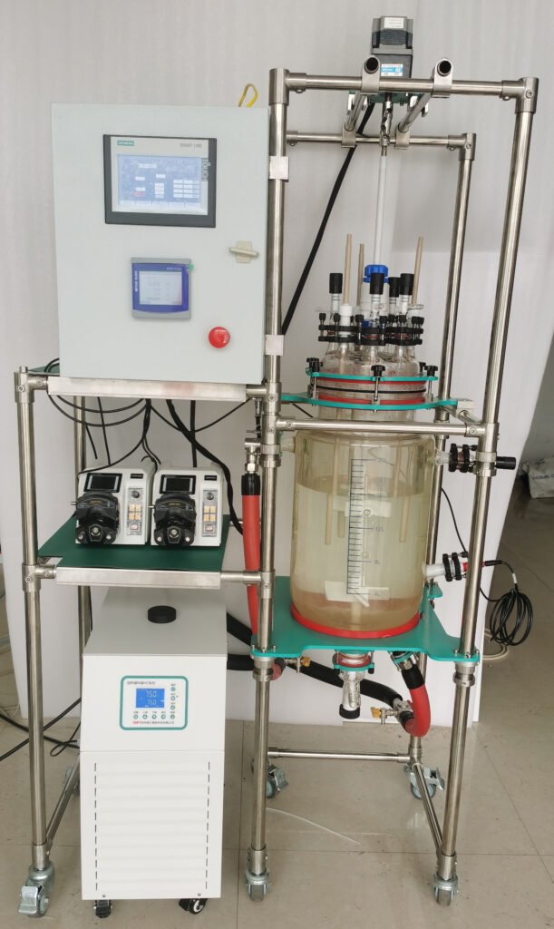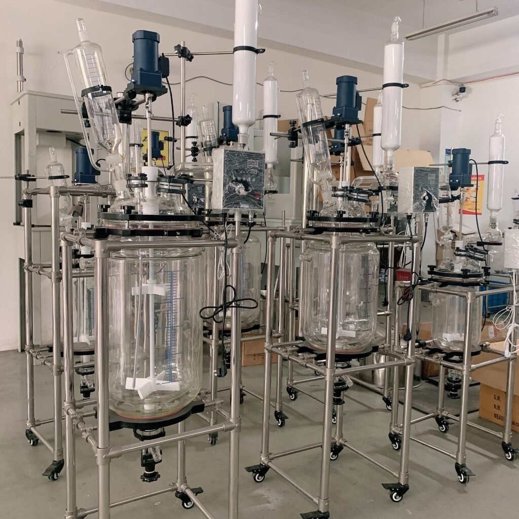 Overall, the 100L jacketed glass reactor serves as a critical pilot-scale platform bridging laboratory research and industrial production. It is used to verify process feasibility, heat release behavior, and scale-up mixing performance, providing reliable data for future large-scale manufacturing.