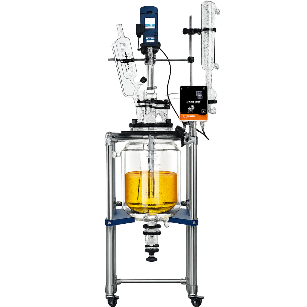 - High-borosilicate double-walled structure — Transparent for real-time observation of industrial scale-up + effective insulation